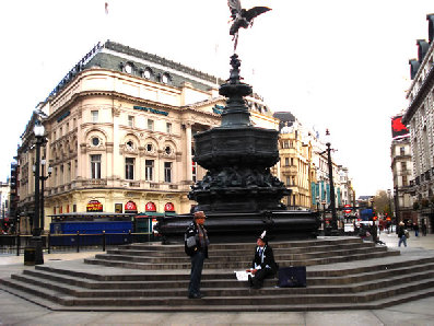 ロンドンの銀座・・地下鉄、ピカデリーサーカス駅を出たところに・・エロス(キューピット)の像が・・
