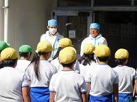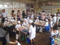 参加希望した1年生の保護者の皆さんが来校し、給食試食会を行いました。はじめに、子供たちの給食配膳の様子を参観していただき、その後、給食の試食を行いました。この日のメニューは鶏肉ときのこのカレー、たこナゲット、こんにゃくサラダでした。参加された保護者の皆さんは、給食試食会をとおして、子供たちの学校生活の様子を感じ取ることができたようです。 |