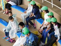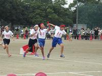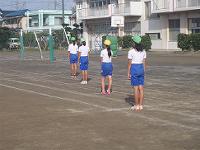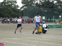 壮行会の最後には、5年生の選抜チームと6年生のチームによるリレーの模範演技がありました。明日の連合運動会が楽しみです。 |