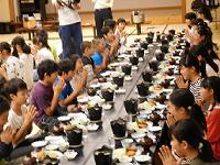 旅館でいただく夕食はとても豪華で、子供たちは大満足でした。