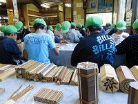 寄木細工の里では、寄木細工体験を行いました。見本を参考にしていろいろな木材のパーツを組み合わせ、思い思いの柄をつくり、コースターを完成させました。初めての体験に子供たちは真剣でした。