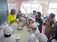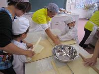 加須げんきプラザの方を講師に招いて、ひまわり学級の子供たちが、うどん作り体験を行いました。子供たちは小麦粉をこねて生地からうどんを作りました。子供たちは生き生きと活動しており、できあがった後おいしそうに試食をしていました。 |