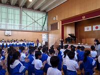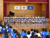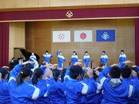 音楽朝会で、2年生が「会えてよかった」の合奏と演奏を発表しました。