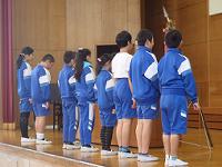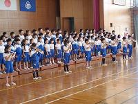 全体朝会を行いました。はじめに、行田市人権ポスター、防犯ポスター、埼玉県科学教育振興展覧会地区展、発明創意くふう展、市内音楽会、行田市少年野球連盟第112回努力大会の表彰を行いました。