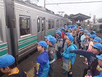 2年生が生活科の学習で電車の乗り方や駅の利用の仕方を学びました。熊谷駅では、全員が切符を買う練習をしたり、新幹線のホームで北陸新幹線「かがやき」を見たりしました。子供たちは電車の仕組みや駅の利用の仕方を学ぶことができました。 |