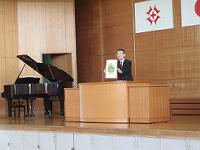 全体朝会では初めに、青少年読書感想コンクール、明るい選挙啓発ポスターコンクール、「埼玉の建設産業」ポスター・絵画コンクール、防火ポスターコンクール、交通安全ポスター・作文コンクール、県民の日記念作文コンクール、浮き城のまち行田少年の主張大会、ふれあい短歌賞、校内持久走大会、行田市ドッジボール大会、浮き城のまち行田駅競争伝大会の表彰を行いました。学校内外において子供たちは、たくさん活躍しました。