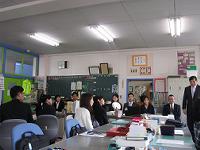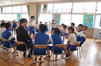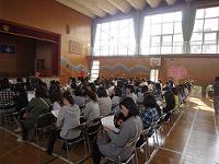 離任式後、転任された先生とのお別れの会が催されました。子供たちと去られた先生方との絆の深さを感じたひとときでした。 |