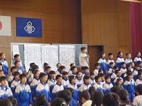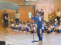 1年生もお礼の気持ちを込めて、元気よく「1年生になったら」の替え歌を歌いました。 それぞれの学年の想いが込められた、温かな会となりました。 |
