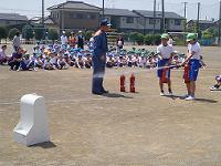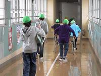 3校時に、火災を想定した避難訓練を行いました。今回は、1号館2階の家庭科室から出火したことを想定した訓練でした。子供たちは、素早く避難することがよくできていました。 その後、消防隊員の方に消火器の使い方を教えていただき、消火訓練も行いました。代表で体験した6年生児童は、教えられた手順通りに火を消すことができました。