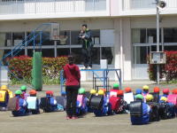 さらに4年生は、4校時に救助袋による避難の体験もしました。普段なかなか体験できないことに、子供たちはとまどいながらも、消防署員さんの話をよく聞いて、避難することができました。 火災の怖さや訓練の大切さを学び合うことができました。 |