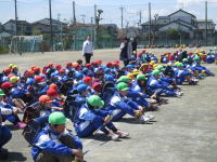 その後、校庭に移動して一斉下校も行いました。 子供たちの一斉下校に職員も同行し、通学路の安全点検も実施しました。 子供たちはどの班もしっかりと並んで下校していました。 |
