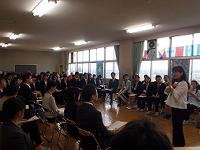授業後の研究協議では指導者の方より、英語活動を通して育てる力について、演習を交えながらご指導いただきました。 |