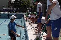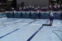 6月9日(木)のプール開きに向けて、5・6年生がプール清掃を行いました。 子供たちは、全校児童が気持ちよく水泳学習が行えるようにと心を込めて、磨いたり洗い流したりしていました。