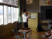 6月1日(水) 3年生のソプラノリコーダー講習会がありました。 講師の先生にリコーダーの持ち方や吹き方を教わりました。 また、リコーダーにはいろいろな種類があることも教わりました。実際に楽器を見せていただいたり、曲を演奏していただいたりと、子どもたちは楽しく講習会を受けることができました。 |