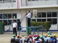安全主任の先生から、自転車でのとび出しの禁止、登下校の際の歩き方やあいさつについて、西小に遊びに来た時に自転車を駐める場所についてのお話がありました。
