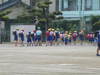 子供たちは話をよく聞き、どの班もしっかりと並んで下校していました。 |