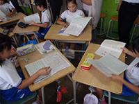 今回の授業は「気になる記号」という報告文を書く活動です。調べてわかったことを下書きし、それを友達同士で読み合い、推敲しました。子供たちは、集中して学習に取り組んでいました。