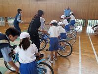 5年生は3校時、6年生は4校時に安全な自転車の走り方や止まり方、故障車や歩行者がいる時の安全な通行の仕方などを学習しました。
