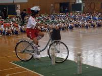 第50回交通安全子供自転車埼玉県大会に出場する代表児童の壮行会を行いました。大会に参加する5名の児童はそれぞれ大会への抱負を語り、その後に技能走行テストを全校児童の前で行いました。代表児童は今までの練習の成果を発揮し、華麗な走行技術を披露してくれました。全校児童から拍手が贈られ、温かい雰囲気の壮行会となりました。 |