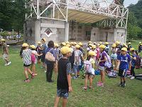 子供たちは、ネイチャーハントという森林公園に生息する動植物などをグループごとに集めてくる活動を行いました。また、ガイドの方の話を聞き、集めてきた動植物などをより詳しく観察して、その生態や不思議などについても学習しました。 お弁当を食べた後は、アスレチックコースでローラー滑り台やブランコ滑車などにチャレンジし、思いきり体を動かしました。