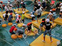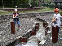 ウォーターアスレチックでは、流力・浮力・圧力・抵抗について体験をとおして学ぶことができ、子供たちに大人気でした。 |