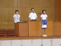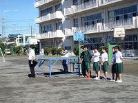 9月29日(木) 全体朝会では、はじめに北埼玉地区小学校家庭科作品展、学校環境緑化コンクールの表彰を行いました。