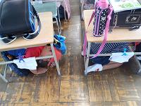始めに緊急地震速報の放送にあわせて子供たちは机の下に潜り、次の放送で校庭に避難しました。どの子も真剣に取り組んでいました。