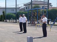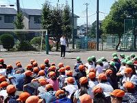 校庭では校長先生と安全主任から、避難訓練についてのお話がありました。