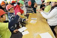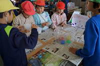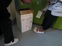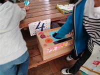 箱の中に入っている物を手の感触だけで当てて、用紙に書いていきます。