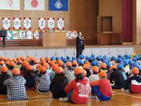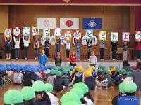 続いて、今回のスローガンが代表の児童から発表されました。