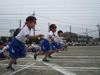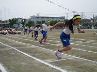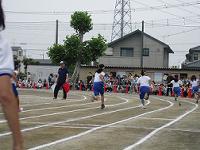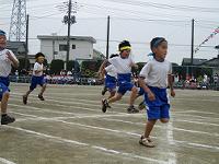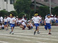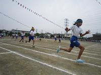 小学校に入学して初めての運動会です。力一杯の1年生の50m走でした。