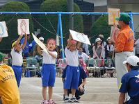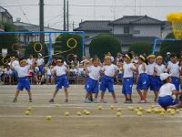 1年生による3色対抗の玉入れです。玉入れが始まる前のかわいいダンスも見所です。