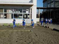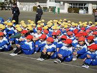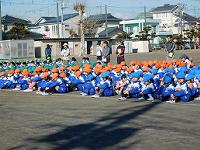 とても寒い中での朝会でしたが、子供たちは寒さに負けず、元気いっぱいに運動していました。 |