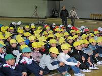 子供たちは真剣に話を聞き、訓練の大切さを確認しました。 |