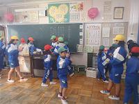2時間目、避難訓練を行いました。今回の避難訓練は、2号館2階の第2理科室を火元に想定しました。子供たちは、「おかしもち」の原則を守り、素早く避難できました。また、各教室の戸を閉めることやカーテンを結束するということもよくできていました。 避難後に校長先生より、火災の恐ろしさや自分で自分の命を守ることなどのお話がありました。