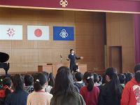 校長先生の話では、今年の干支「酉」の文字の紹介がありました。この文字の語源や意味について「1年間がんばってきた成果があらわれる年」ということを教えていただきました。 最後に、「ことばづかいを正しくしよう」という今月の目標についての話がありました。